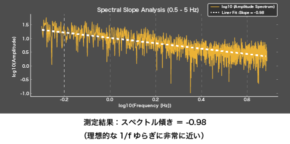 光の測定と調整を繰り返し、1/fゆらぎの傾向を実現しました。